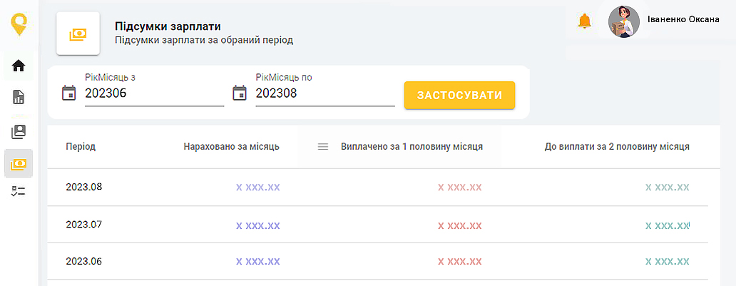 Впровадження Особистого кабінету спрощує чимало рутинних справ. Одна з надзвичайно зручних функцій – легкий доступ до ваших розрахункових листів. У два кліки мишкою ви бачите всі нарахування та виплати, які отримуєте окремо за першу і другу половину місяця.