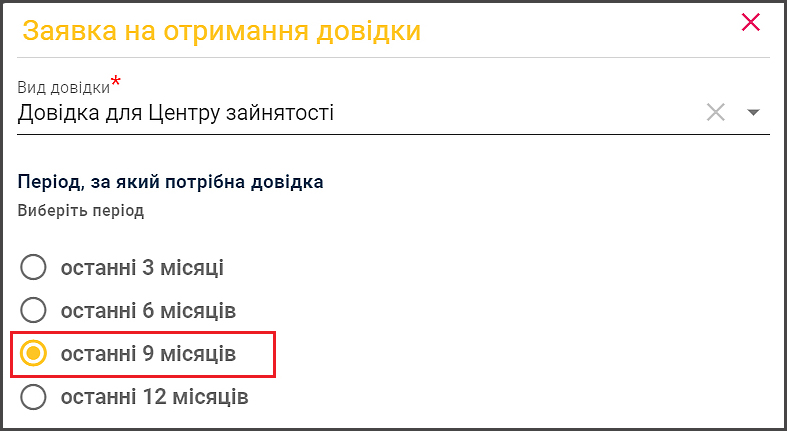 Частина довідок містить період, за який подаються дані (наприклад, ваші доходи за минулі 9 місяців). У такому разі система попросить зазначити часовий проміжок.