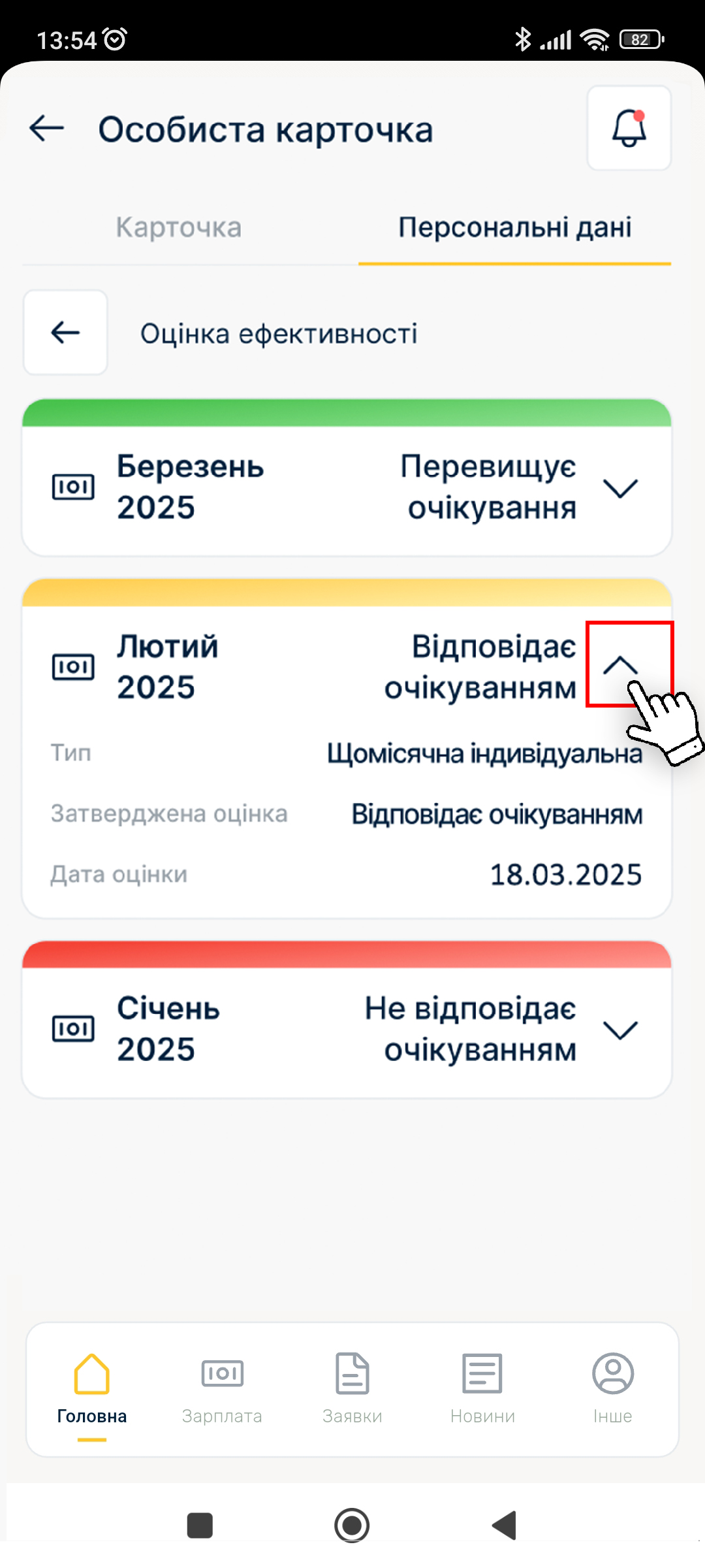 Оцінка ефективності нашої роботи – це і відчуття задоволення від власних успіхів, і радість від того, що компанія цінує наші зусилля, і розмір нашої премії. Відтепер застосунок Персонал зберігає усі наші затверджені оцінки. То де їх шукати?