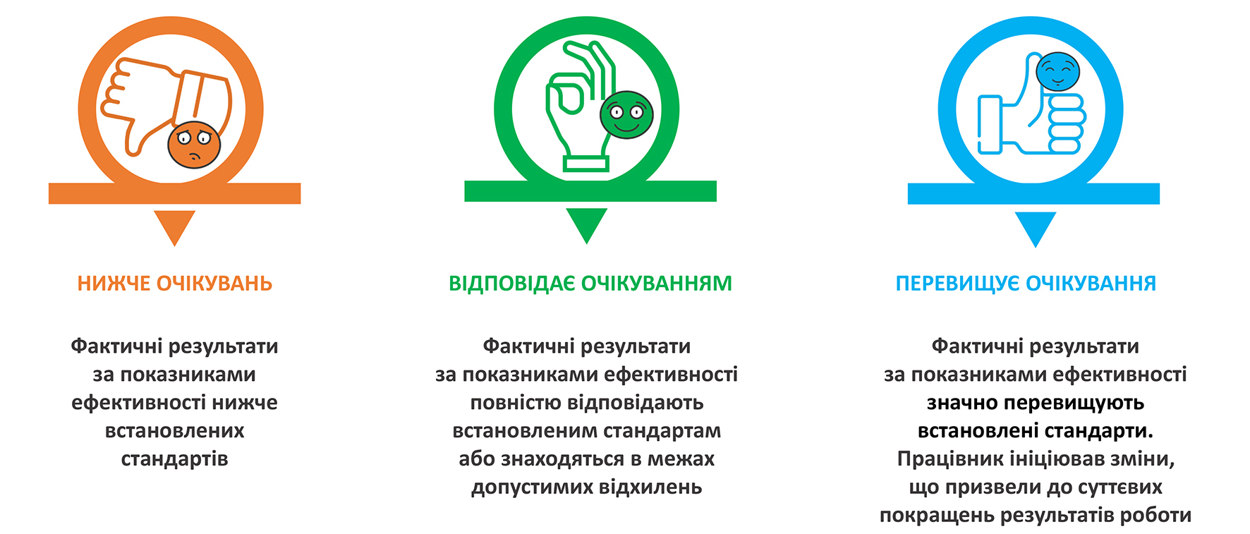 З початку року в Укрпошті діє спрощена система преміювання офісних працівників. Залежно від ефективності роботи, кожен отримує одну з трьох оцінок: «нижче очікувань» (звісно, тут без премій), «відповідає очікуванням» або «перевищує очікування». Одні посади оцінюються щомісяця, інші – щокварталу.