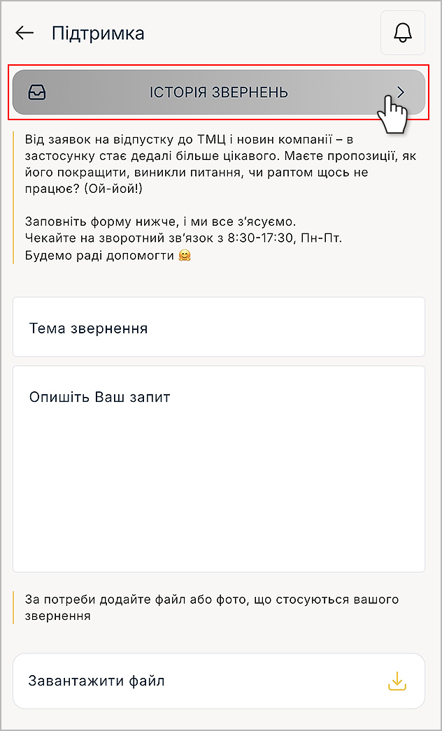 Історія звернень до Підтримки в застосунку Персонал: усе під рукою